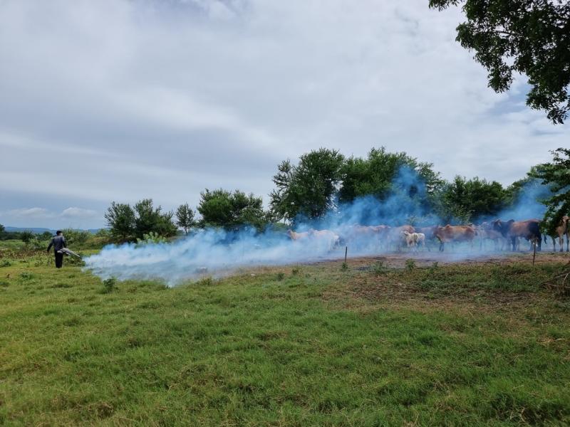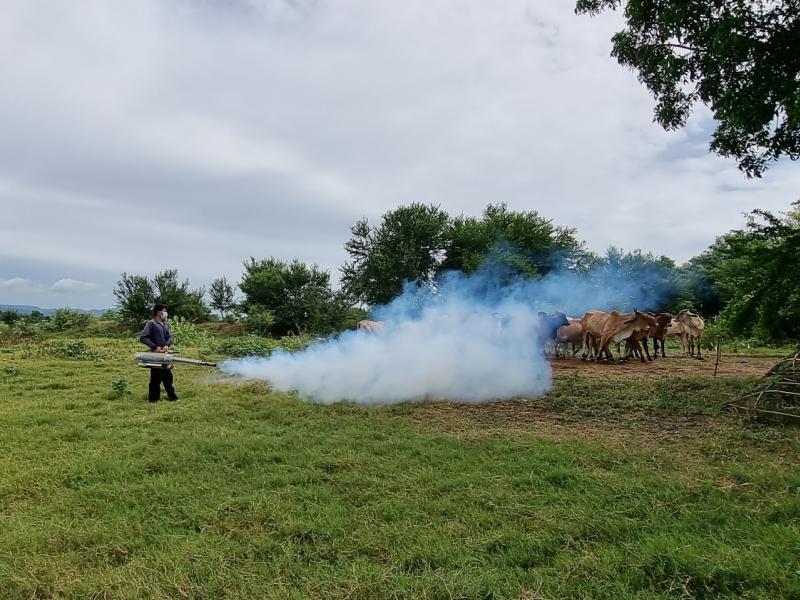 พ่นหมอกควันให้กับเกษตรกรเลี้ยงโค-กระบือ