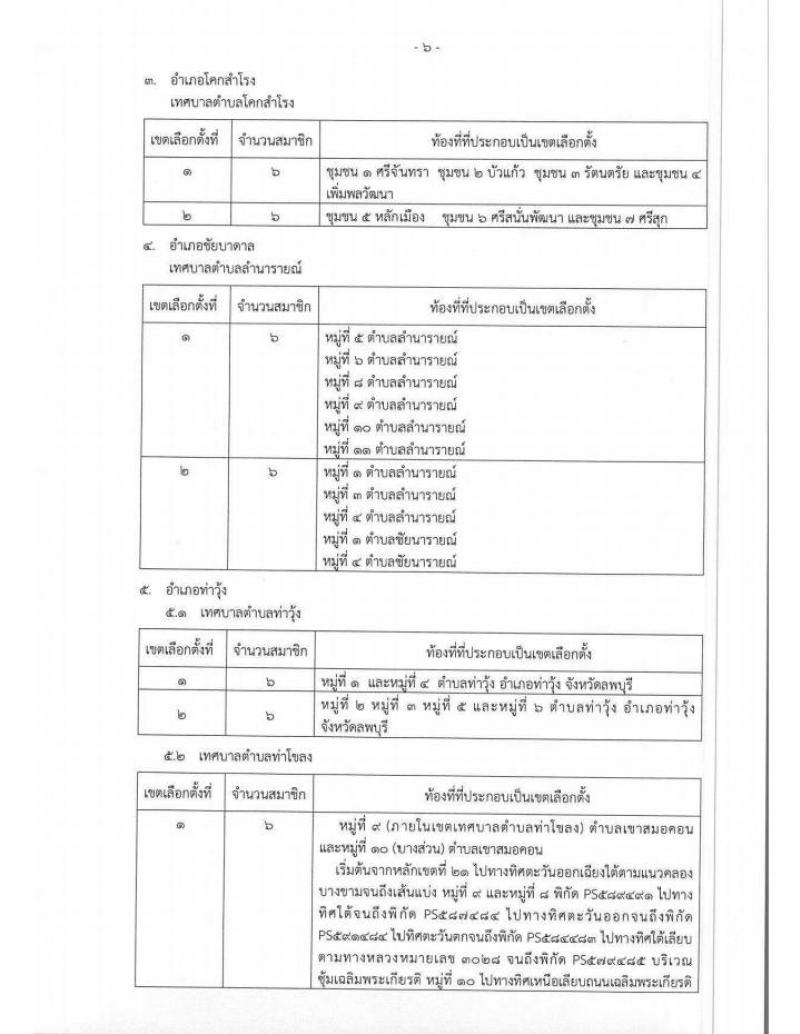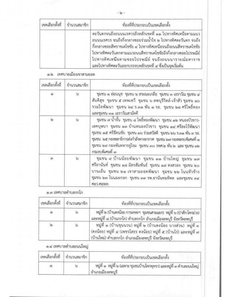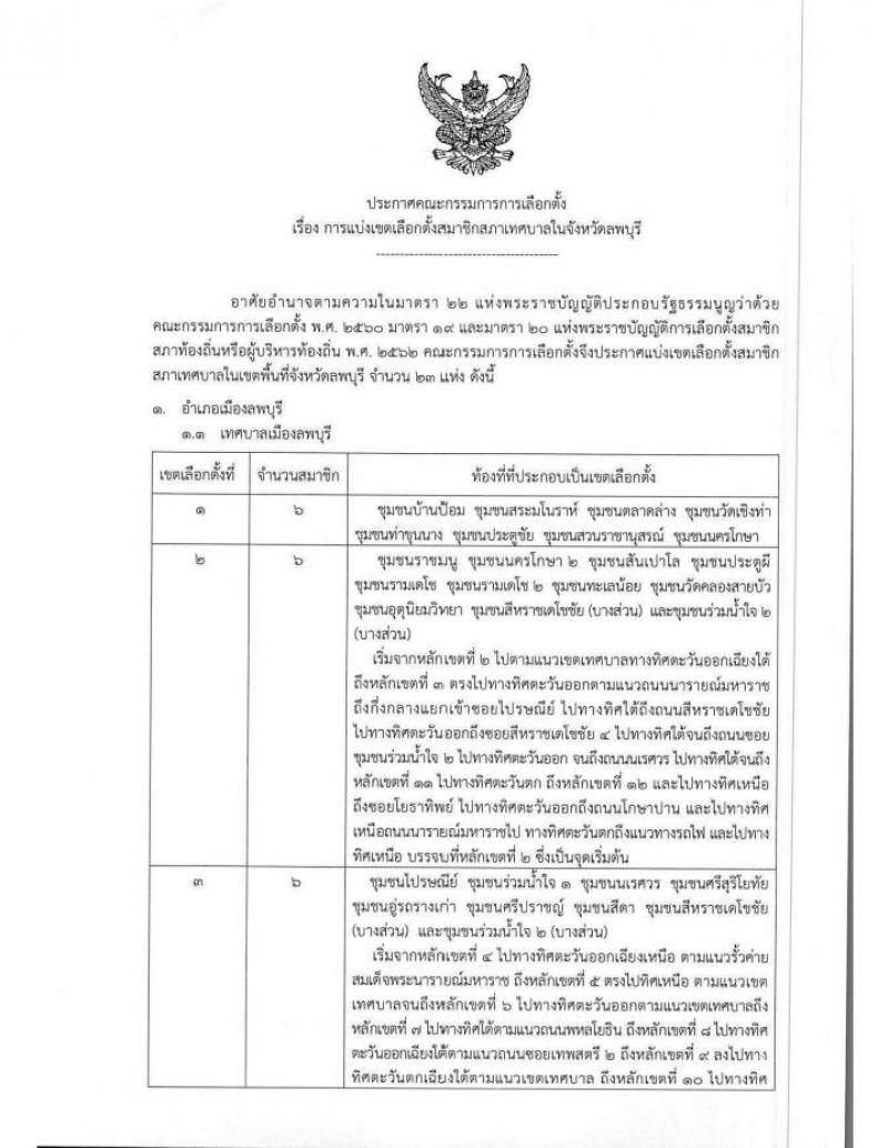 รายละเอียด : ???? ประกาศคณะกรรมการการเลือกตั้ง เรื่อง แบ่งเขตเลือกตั้งสมาชิกสภาเทศบาลในจังหวัดลพบุรี