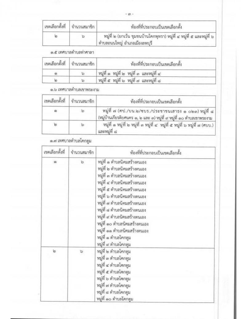 ประกาศคณะกรรมการการเลือกตั้ง เรื่อง แบ่งเขตเลือกตั้งสมาชิกสภาเทศบาลในจังหวัดลพบุรี