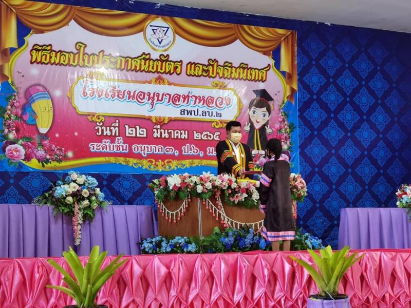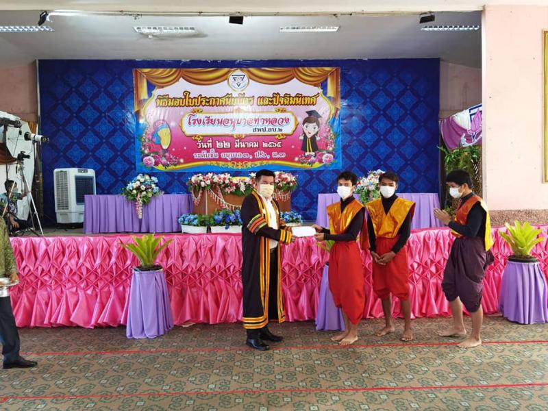 พิธีมอบใบประกาศนียบัตร และปัจฉิมนิเทศ ให้กับนักเรียนที่จบการศึกษา ระดับชันอนุบาลปีที่3 ชั้นประถมศึกษาปีที่6 และชั้นมัธยมศึกษาปีที่3 ปีการศึกษา 2564