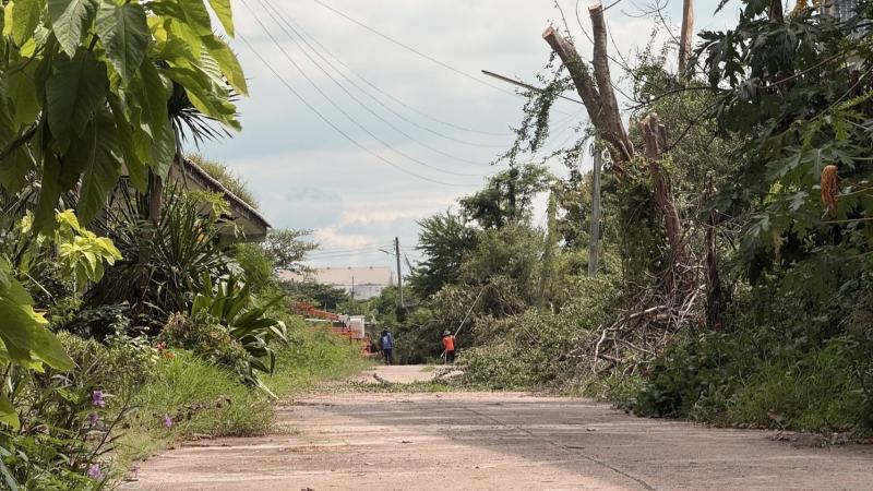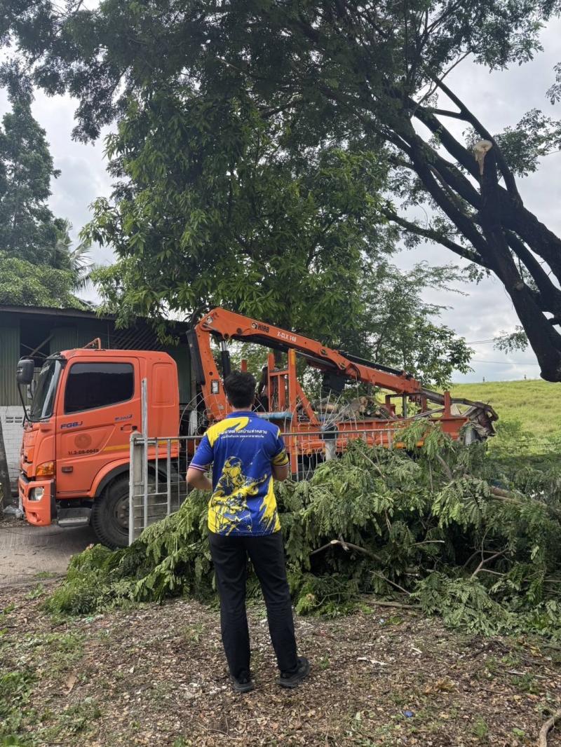 การไฟฟ้าส่วนภูมิภาคอำเภอท่าหลวง ให้การอนุเคราะห์เจ้าหน้าที่พร้อมรถกระเช้าในการดำเนินการตัดแต่งต้นไม้