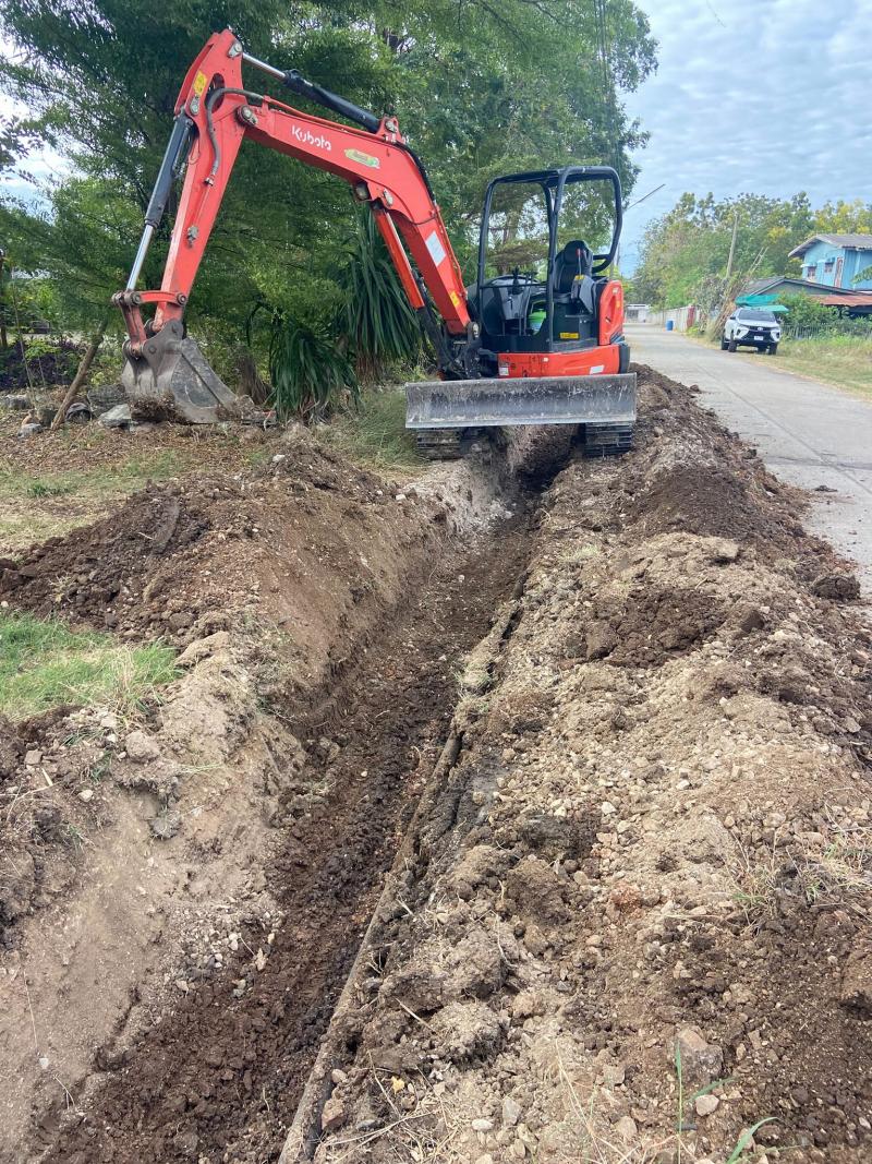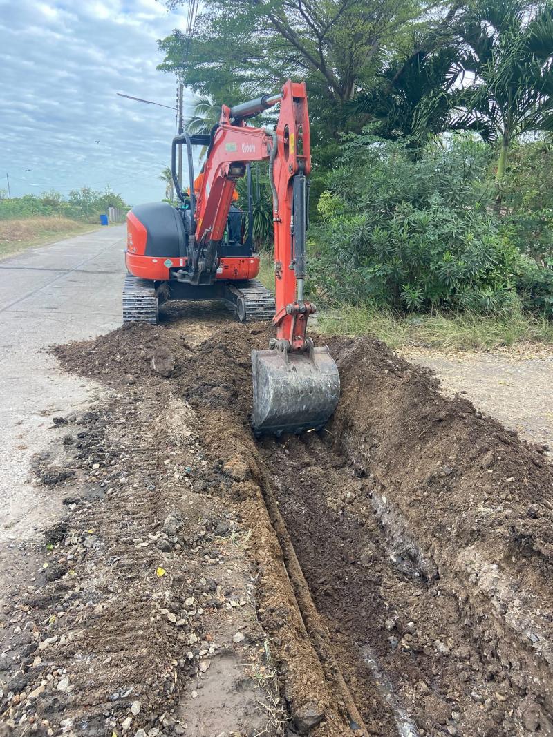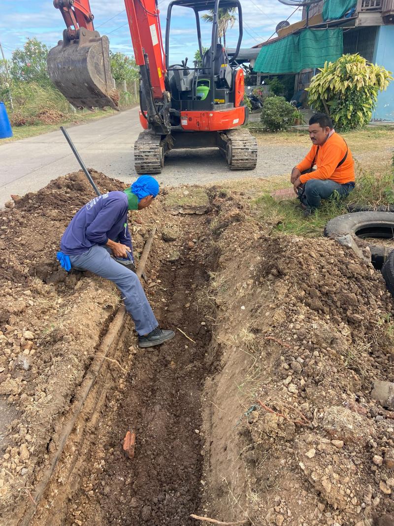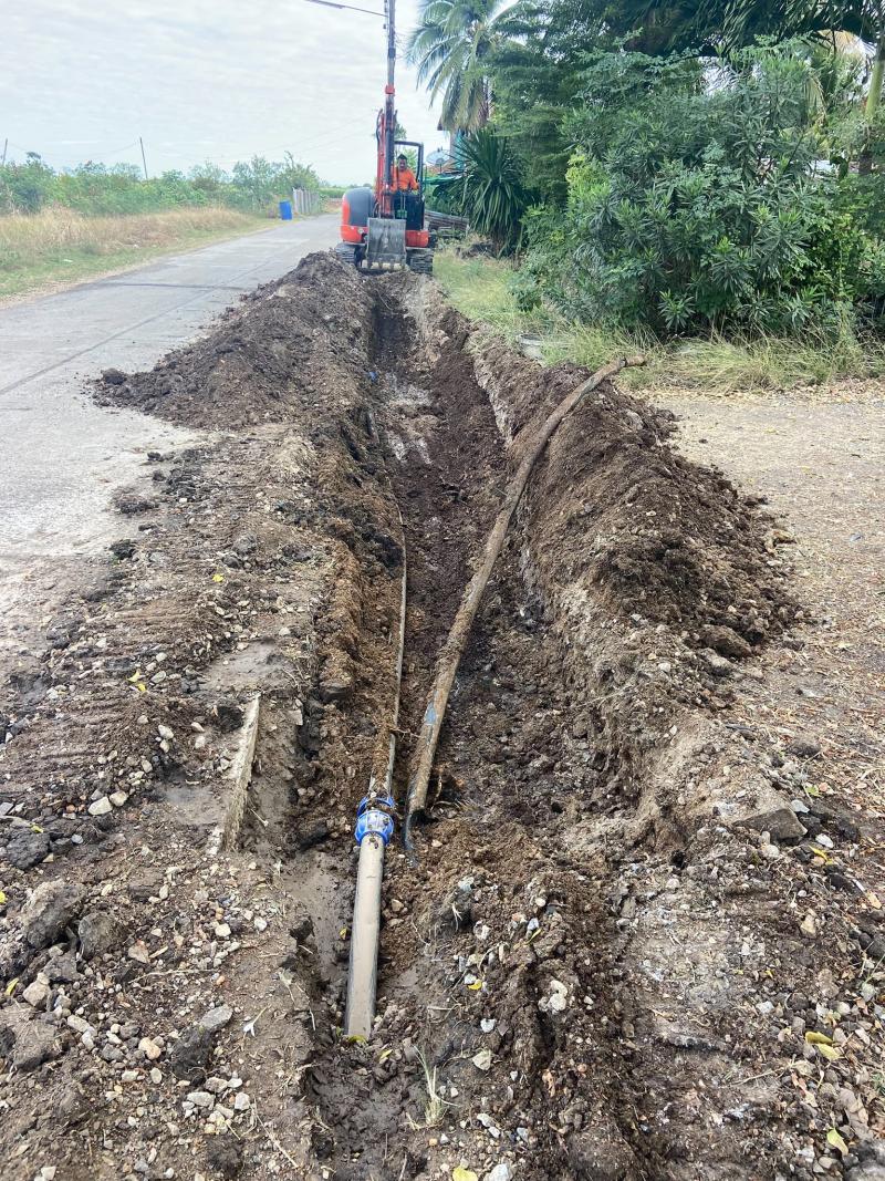 ดำเนินการ ซ่อมระบบส่งน้ำ(ท่อเมน) บริเวณหอสูงส่งน้ำ หลังรพ.ท่าหลวง