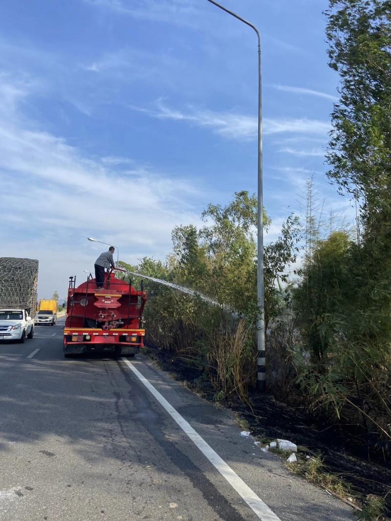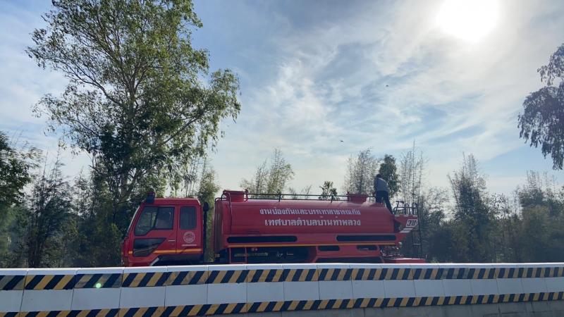 นำรถดับเพลิงออกร่วม ระงับเหตุเพลิงไหม้ บริเวณสวนปาล์มแยกนิยมชัย