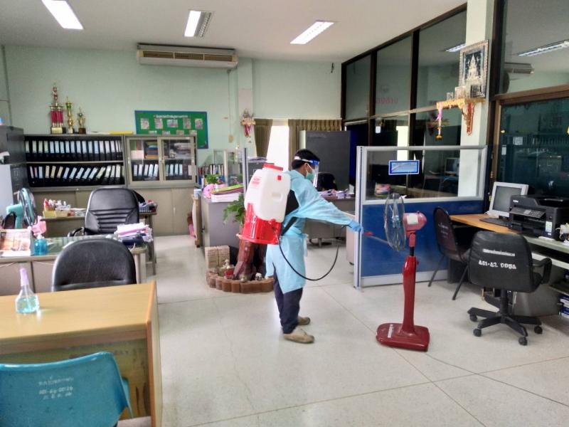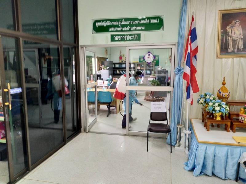 ฉีดพ่นยาฆ่าเชื้อสำนักงานเทศบาลตำบลบ้านท่าหลวง ตามมาตรการเฝ้าระวัง และป้องกันการแพร่กระจายของโรคติดเชื้อไวรัสโคโรน่า 2019 (covid 19)