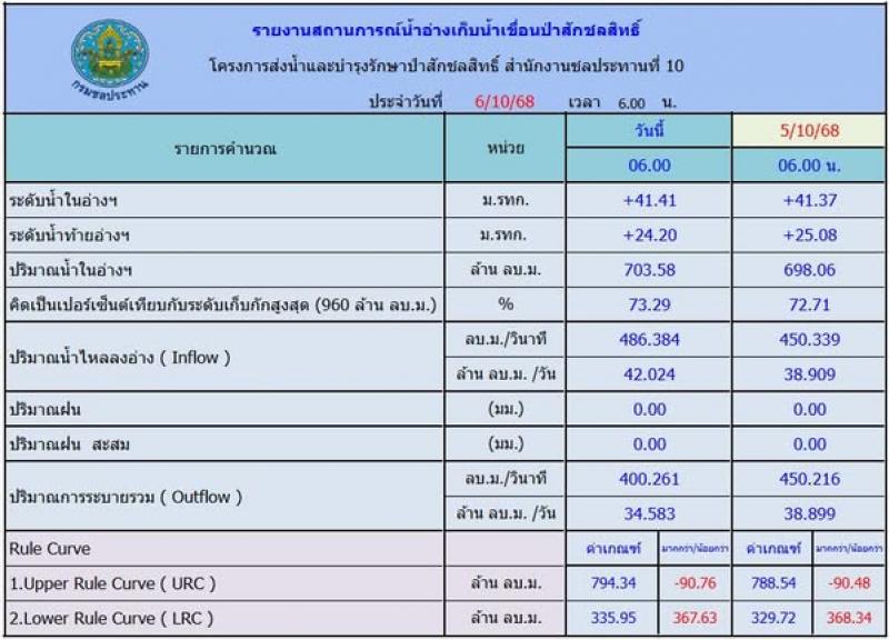 สถานการณ์น้ำ ประจำวันที่ 6 ตุลาคม 2568 เวลา 06.00 น.