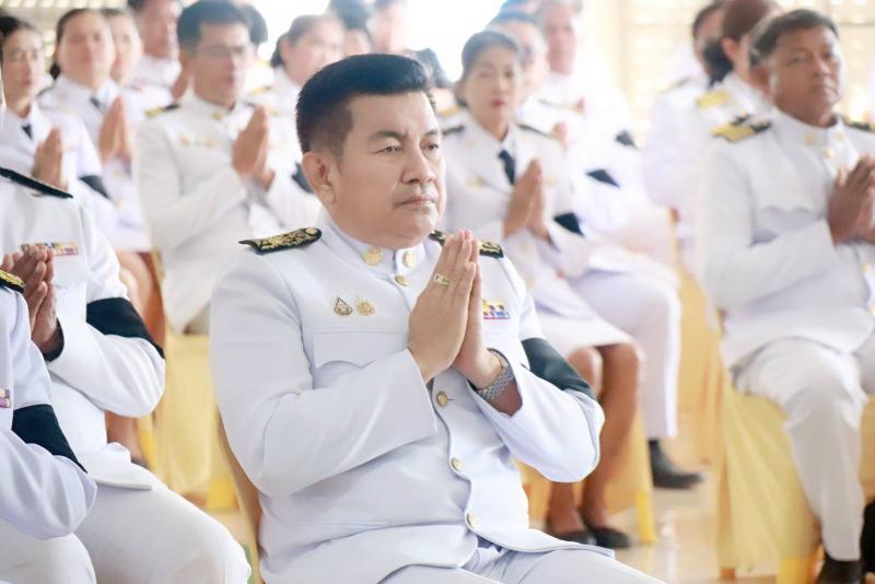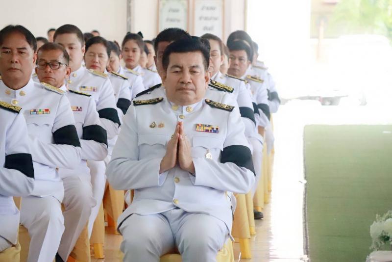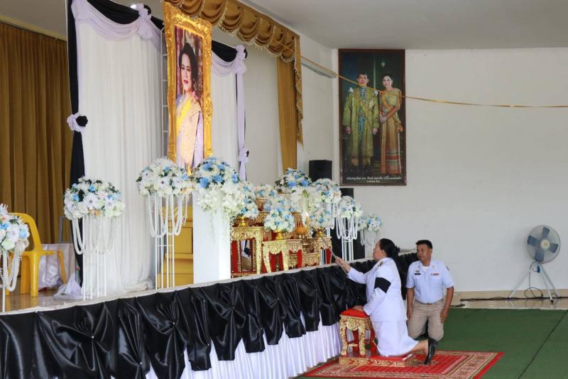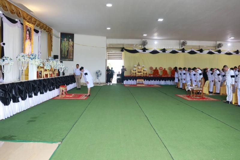 คณะผู้บริหาร ประธานสภา รองประธานสภา สมาชิกสภา ปลัดเทศบาล หัวหน้าส่วนราชการ ข้าราชการ และพนักงานเทศบาลตำบลบ้านท่าหลวง ร่วมพิธีบำเพ็ญกุศลทักษิณานุประทานอุทิศถวายพระราชกุศลแด่สมเด็จพระนางเจ้า