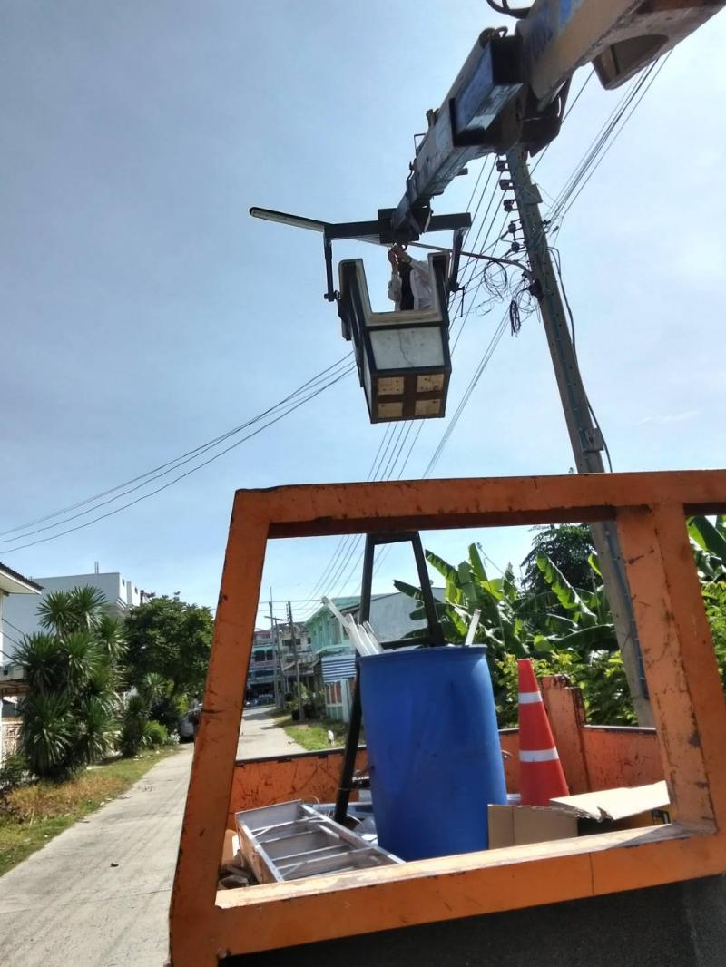 กองช่างเทศบาลตำบลบ้านท่าหลวง ดำเนินการ ตรวจสอบ ซ่อมแซม และเปลี่ยน หลอดไฟ โคมไฟ ไฟส่องสว่างสาธารณะในจุดที่ชำรุด ภายในพื้นที่เขตเทศบาล