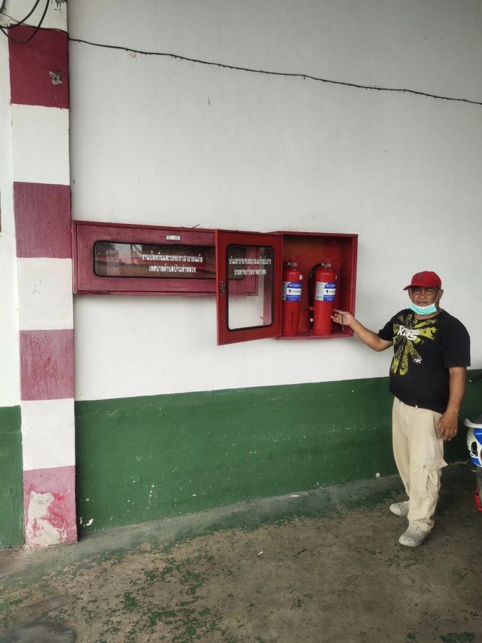 งานป้องกันและบรรเทาสาธารณภัยเทศบาลตำบลบ้านท่าหลวง ดำเนินการติดตั้งถังดับเพลิงพร้อมตรวจเช็คสภาพของอุปกรณ์ถังดับเพลิง [12 กันยายน 2565]