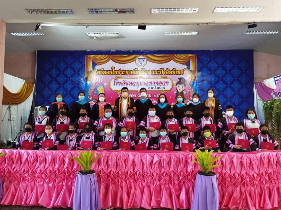 พิธีมอบใบประกาศนียบัตร และปัจฉิมนิเทศ ให้กับนักเรียนที่จบการศึกษา ระดับชันอนุบาลปีที่3 ชั้นประถมศึกษาปีที่6 และชั้นมัธยมศึกษาปีที่3 ปีการศึกษา 2564 [22 มีนาคม 2565]
