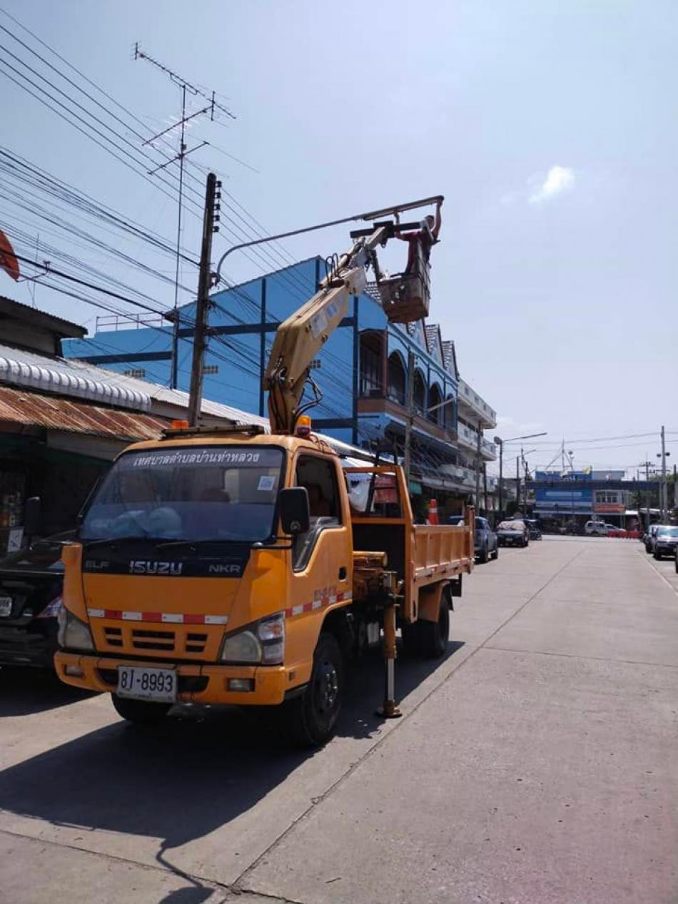 ตรวจสอบ พร้อมทั้งปรับปรุงแก้ไข ซ่อมแซม และเปลี่ยนหลอดไฟฟ้าส่องสว่างสาธารณะ ในจุดที่ชำรุด ภายในพื้นที่เขตเทศบาลตำบลบ้านท่าหลวง [23 กุมภาพันธ์ 2565]