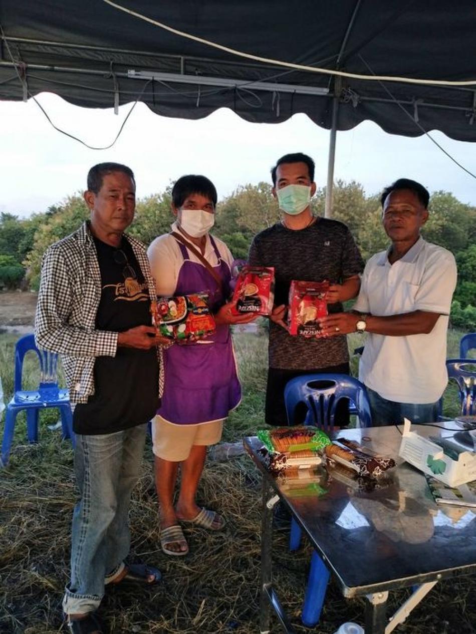 คุณสุวรรณ เปรมปรี (พี่ดล หมู่3) ที่ นำกาแฟซองขนมปัง และบะหมี่กึ่งสำเร็จรูป มาร่วมสนับสนุน เจ้าหน้าที่ ณ.จุดเฝ้าระวังประตูระบายน้ำ [29 กันยายน 2564]