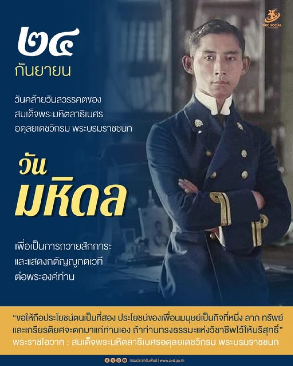 24 กันยายน ของทุกปี วันมหิดล [24 กันยายน 2568]