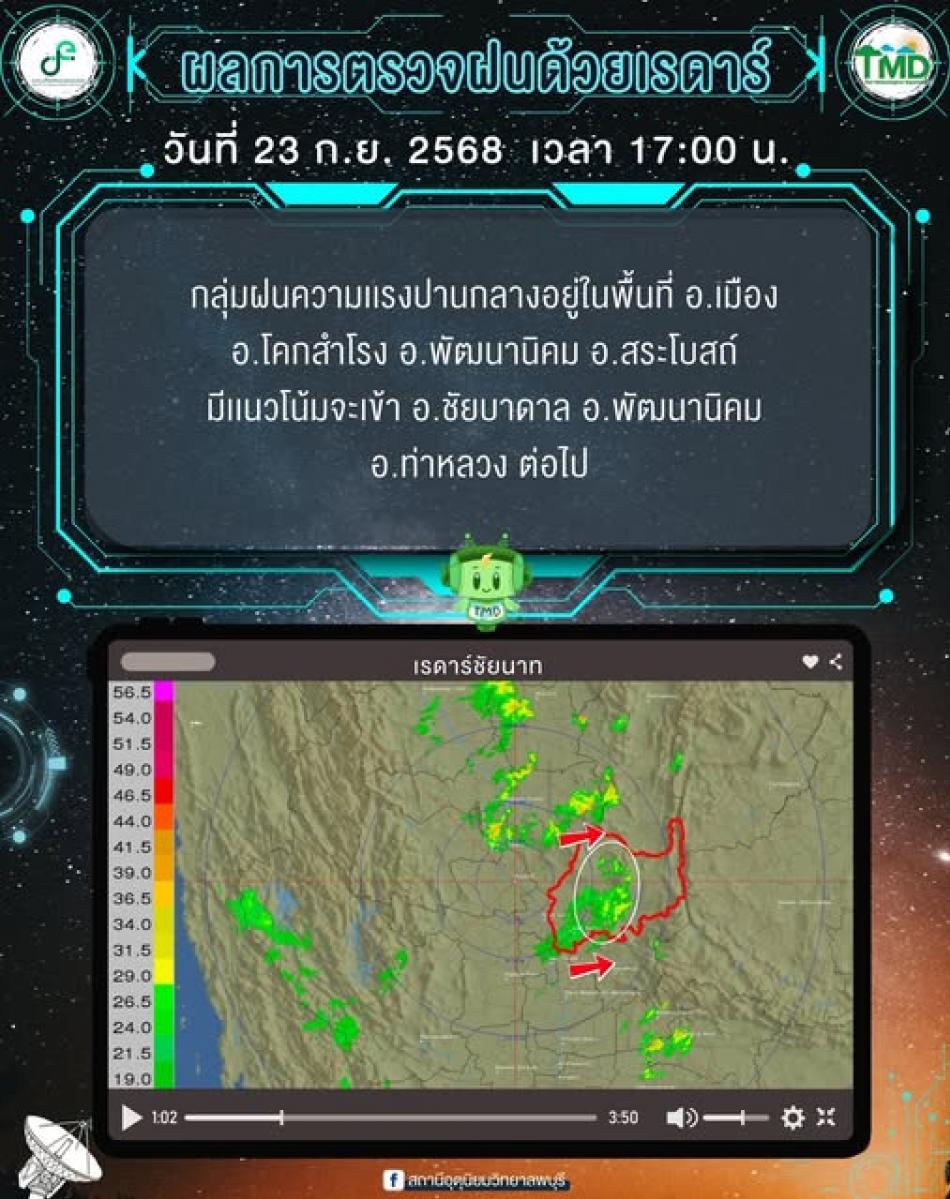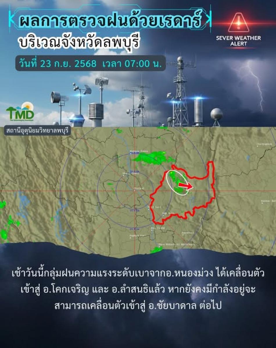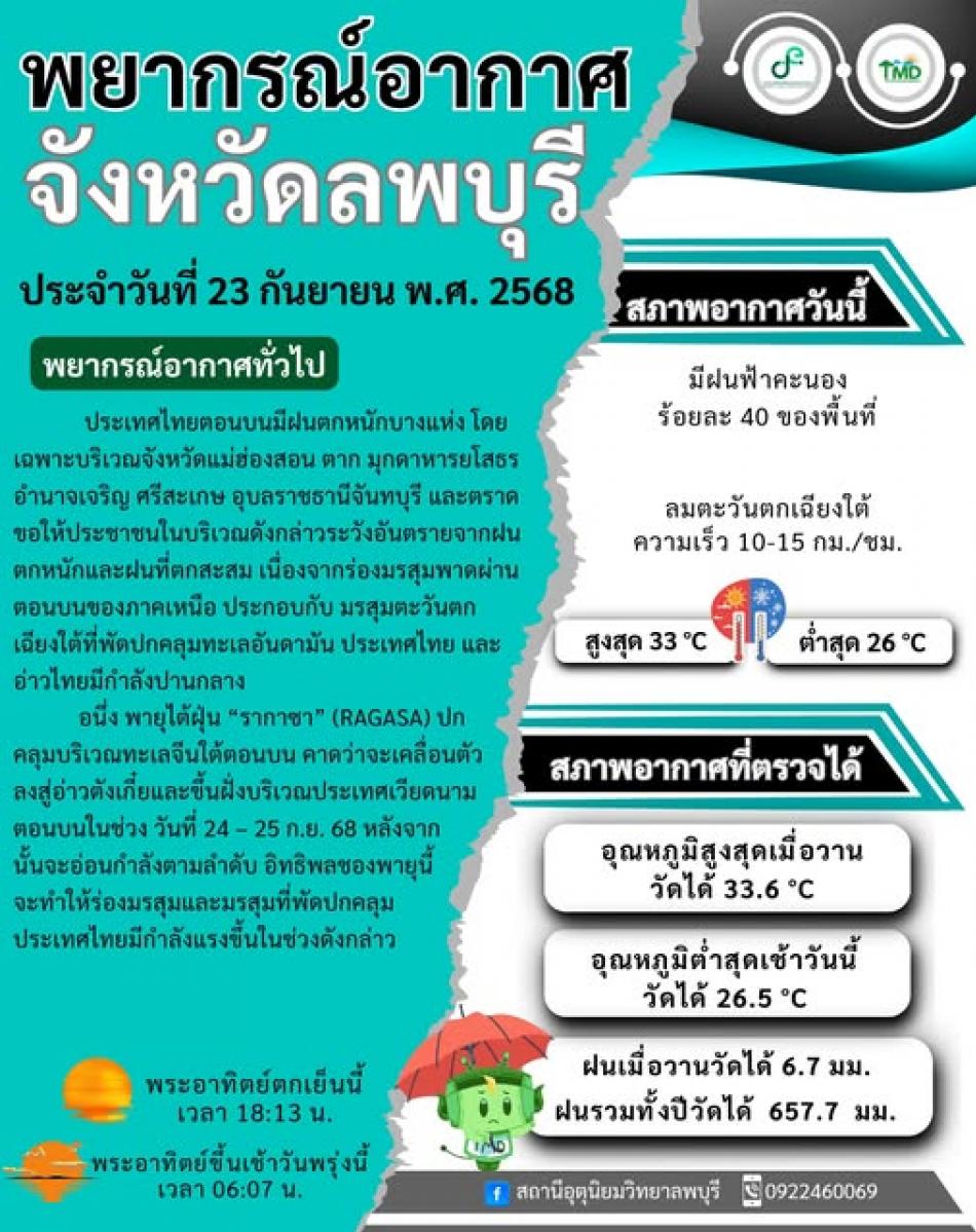 พยากรณ์อากาศจังหวัดลพบุรี ประจำวันที่ 23 ก.ย. 2568 [23 กันยายน 2568]