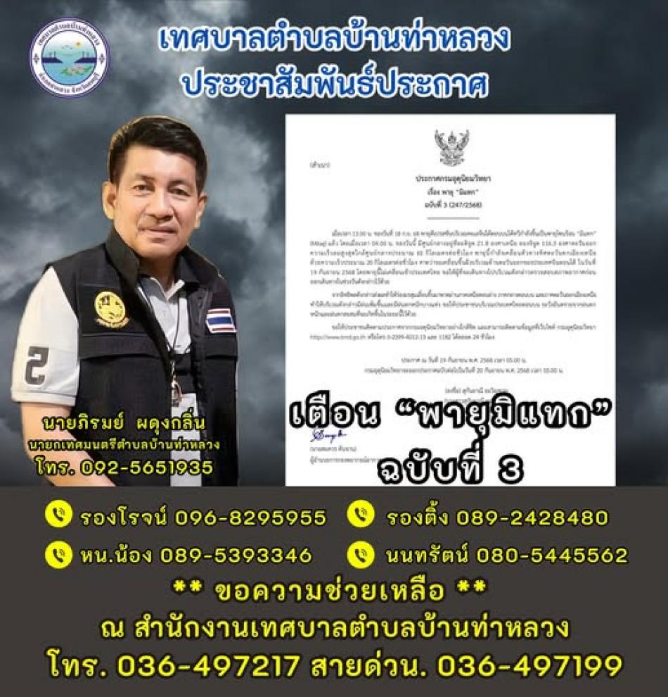 ประกาศกรมอุตุนิยมวิทยา เรื่อง พายุ “มิแทก” ฉบับที่ 3 (247/2568) [19 กันยายน 2568]