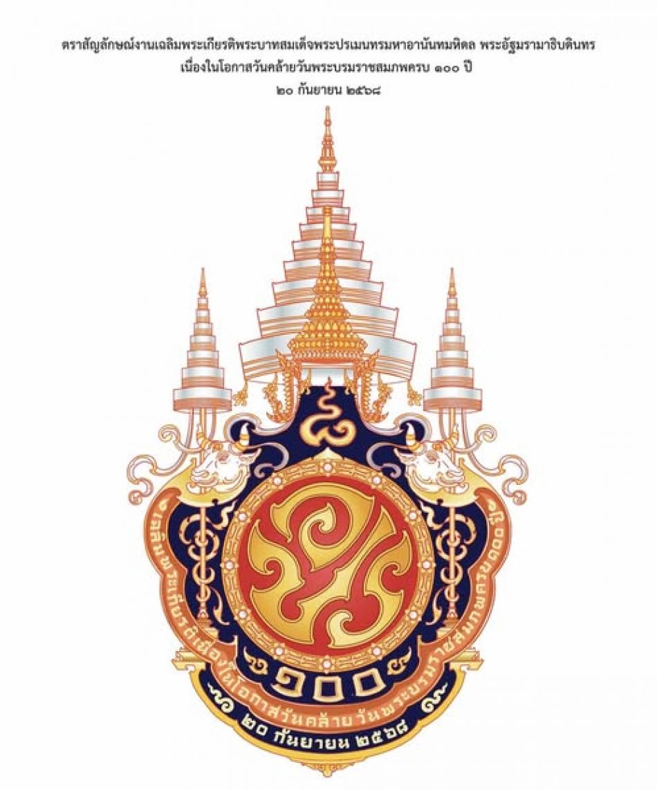 ตราสัญลักษณ์การจัดงานเฉลิมพระเกียรติพระบาทสมเด็จพระปรเมนทรมหาอานันทมหิดล พระอัฐมรามาธิบดินทร เนื่องในโอกาสวันคล้ายวันพระบรมราชสมภพครบ ๑๐๐ ปี ๒๐ กันยายน ๒๕๖๘ [3 กันยายน 2568]
