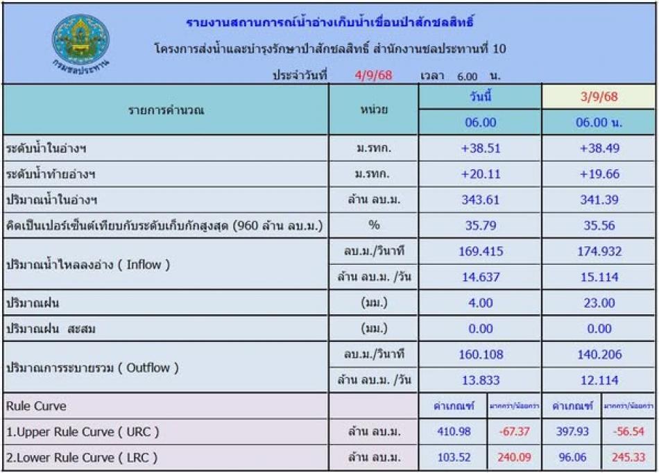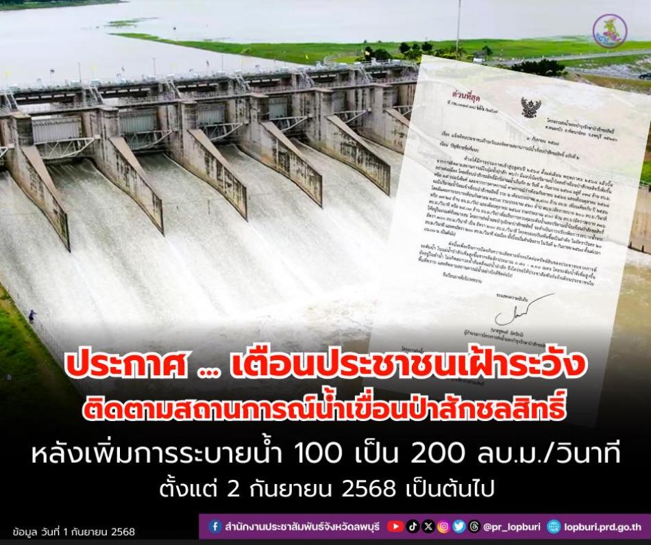โครงการส่งน้ำและบำรุงรักษาป่าสักชลสิทธิ์แจ้งเตือนประชาชนเฝ้าระวังและติดตามสถานการณ์น้ำเขื่อนป่าสักชลสิทธิ์ ฉบับที่ 2 [2 กันยายน 2568]