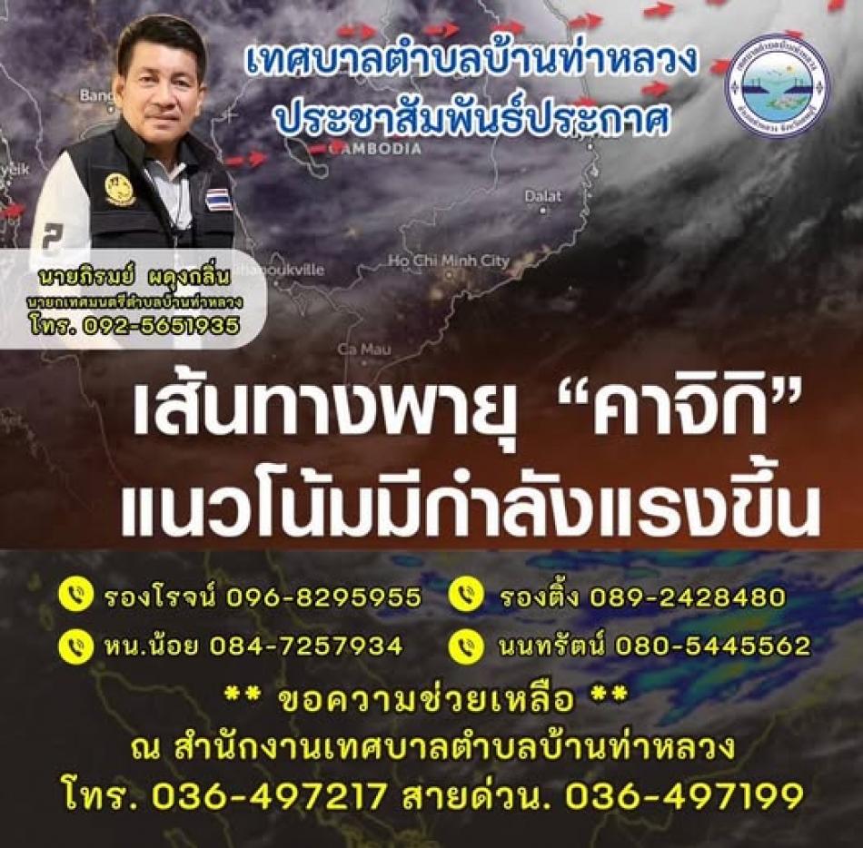 เทศบาลตำบลบ้านท่าหลวง แจ้งเตือนประชาชนเตรียมพร้อมรับสถานการณ์ฝนตกหนักถึงหนักมากและลมกระโชกแรงจาก พายุไต้ฝุ่น"คาจิกิ" ในวันที่ 25 - 27 ส.ค.68 [25 สิงหาคม 2568]