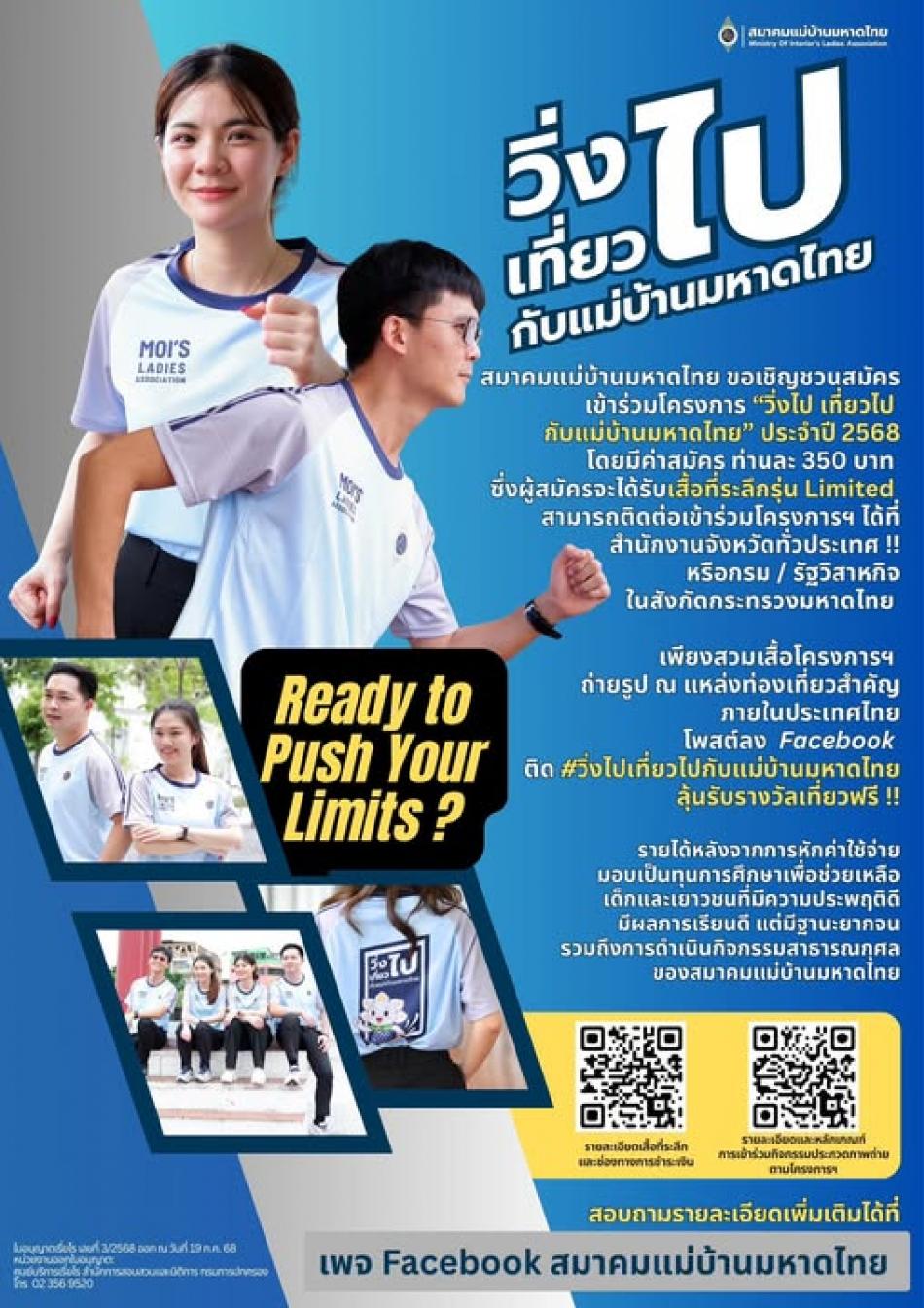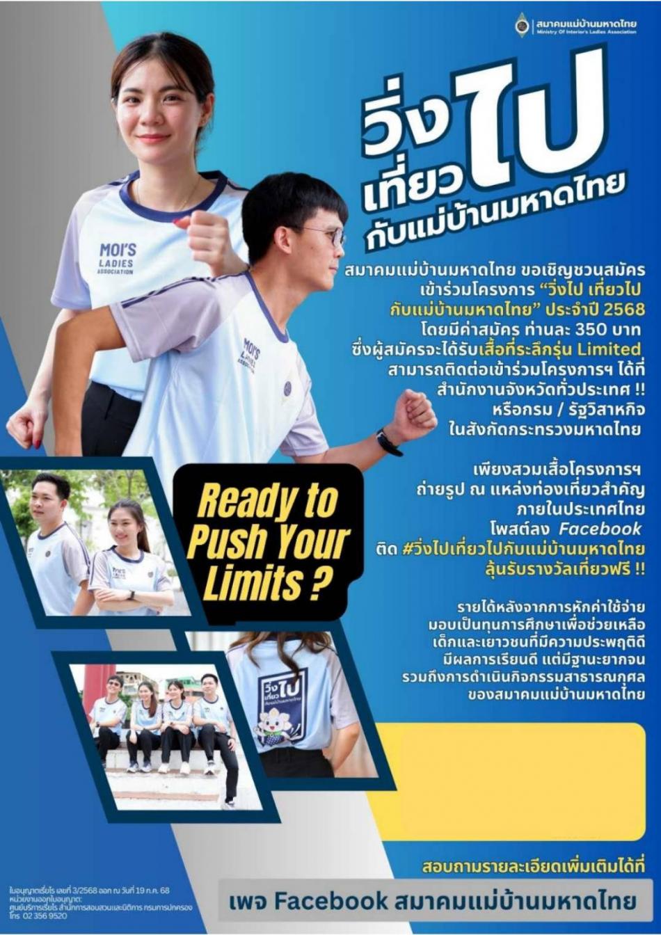เริ่มแล้ว “ วิ่งไป เที่ยวไป กับแม่บ้านมหาดไทย ปี 68!!” [5 สิงหาคม 2568]