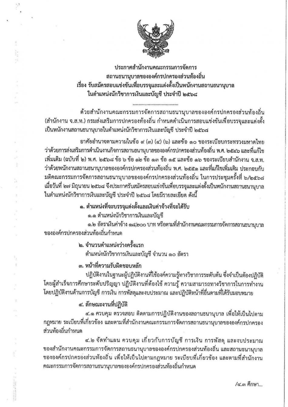 ประชาสัมพันธ์รับสมัครสอบแข่งขันเพื่อบรรจุและแต่งตั้งเป็นพนักงานสถานธนานุบาล ในตำแหน่งนักวิชาการเงินและบัญชี ประจำปี 2568 [5 สิงหาคม 2568]