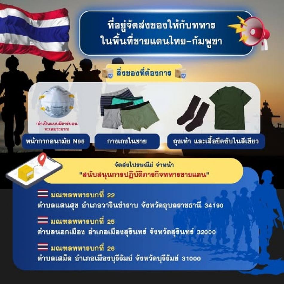 ที่อยู่จัดส่งของให้กับทหารในพื้นที่ชายแดนไทย-กัมพูชา [5 สิงหาคม 2568]