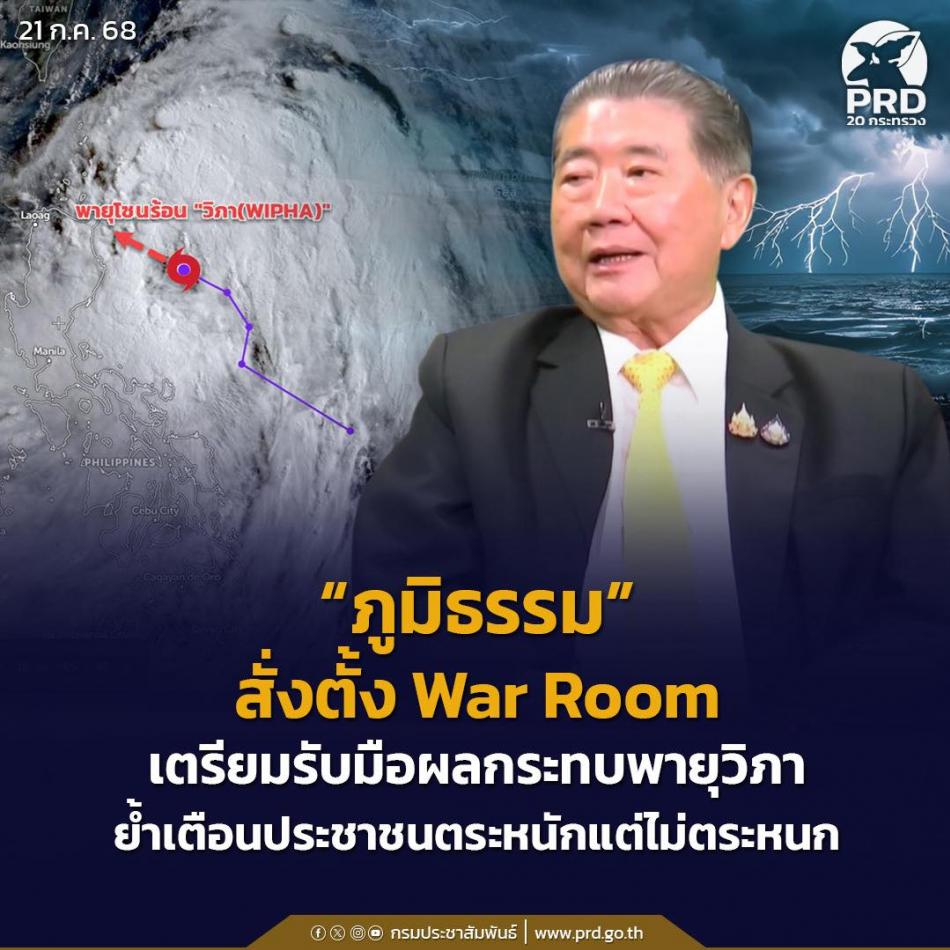 “ภูมิธรรม” สั่งตั้ง War Room เตรียมรับมือผลกระทบพายุวิภา [21 กรกฎาคม 2568]
