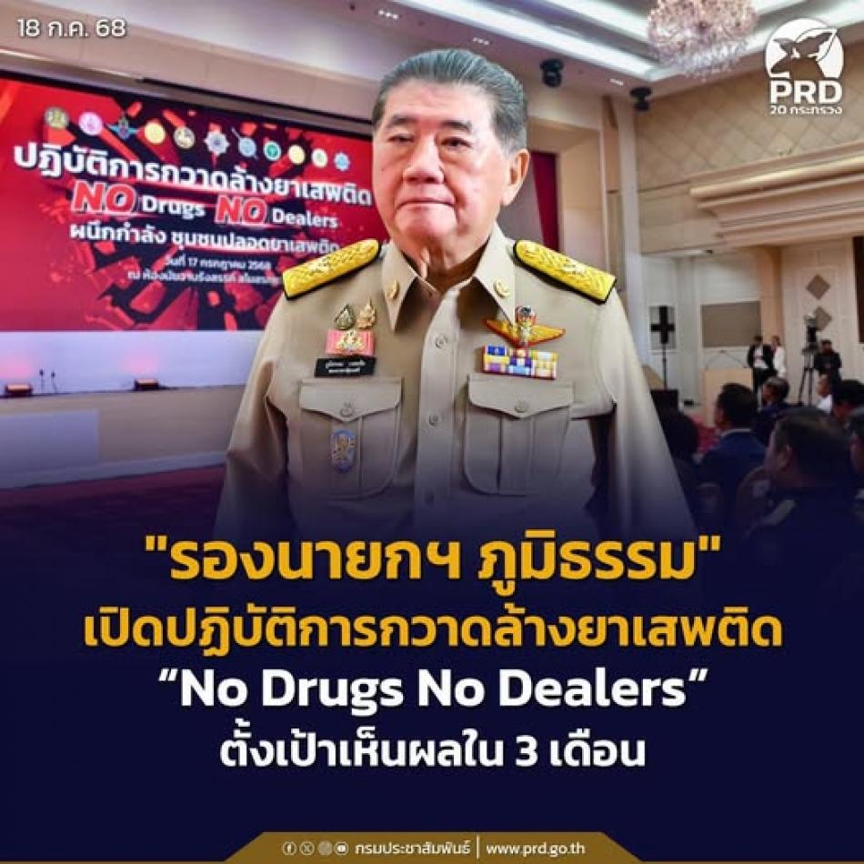“รองนายกฯ ภูมิธรรม” เปิดปฏิบัติการกวาดล้างยาเสพติด “No Drugs No Dealers” ตั้งเป้า เห็นผลใน 3 เดือน [18 กรกฎาคม 2568]