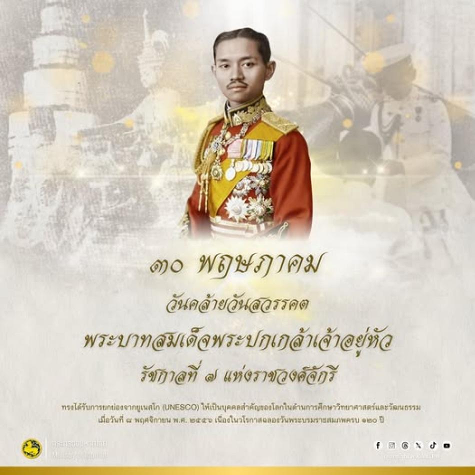 30 พฤษภาคม วันคล้ายวันสวรรคต พระบาทสมเด็จพระปกเกล้าเจ้าอยู่หัว รัชกาลที่ 7 [30 พฤษภาคม 2568]