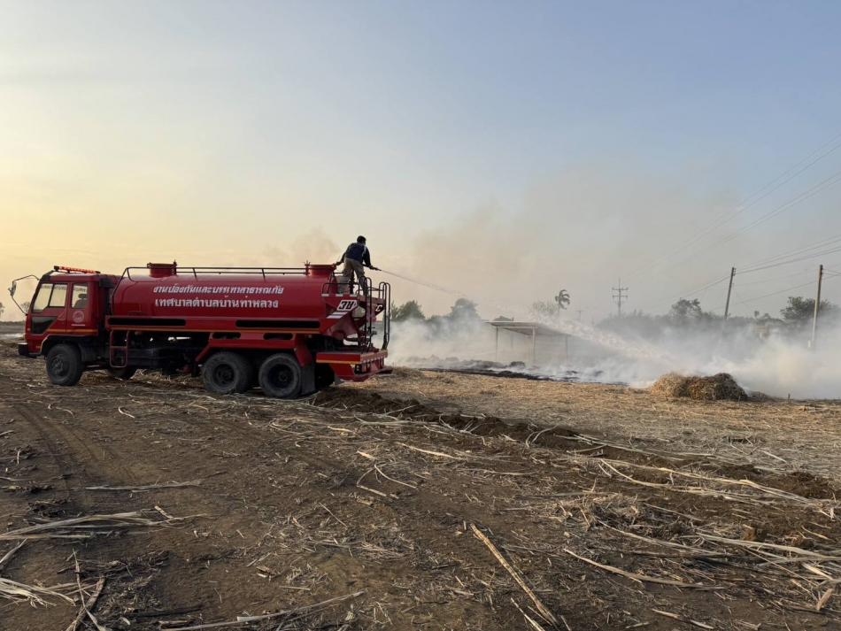 งานป้องกันฯ พร้อมเจ้าหน้าที่งานป้องกัน ฯ เทศบาลตำบลบ้านท่าหลวง ลงพื้นที่ระงับเหตุเพลิงไหม้อ้อยลามเข้าใกล้บ้านเรือนประชาชนบริเวณโรงเรียนบ่อคู่ [28 มกราคม 2568]