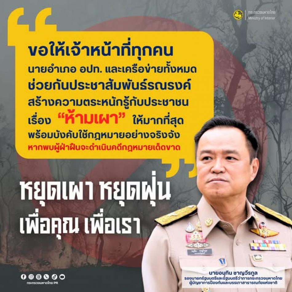มท.1 สั่งการให้ทุกหน่วยงานร่วมบูรณาการใน 6 มาตรการ ยกระดับการแก้ไขปัญหาไฟป่า หมอกควัน และฝุ่นละอองขนาดเล็ก (PM2.5) [29 มกราคม 2568]