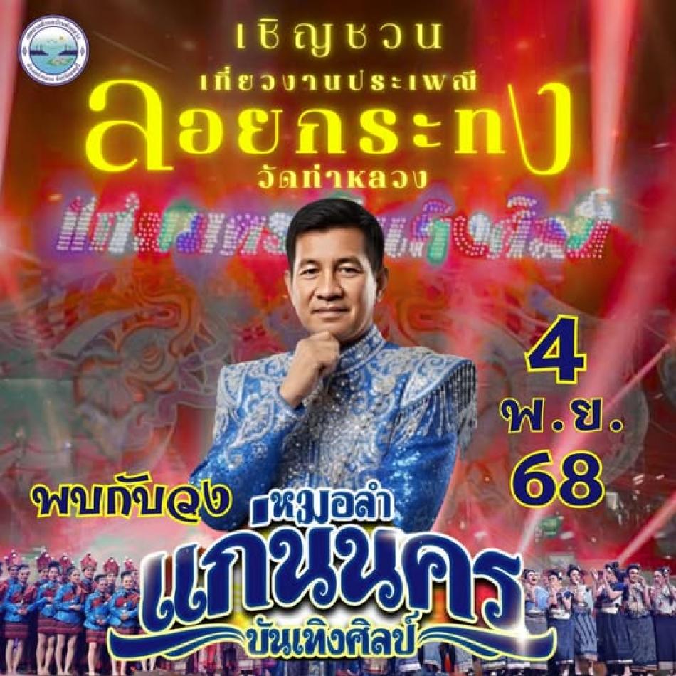 ขอเชิญชวนทุกท่าน...เที่ยวงานประเพณีลอยกระทง ประจำปี 2568 วันที่ 4 - 5 พ.ย. 68 ณ วัดท่าหลวง [20 ตุลาคม 2568]