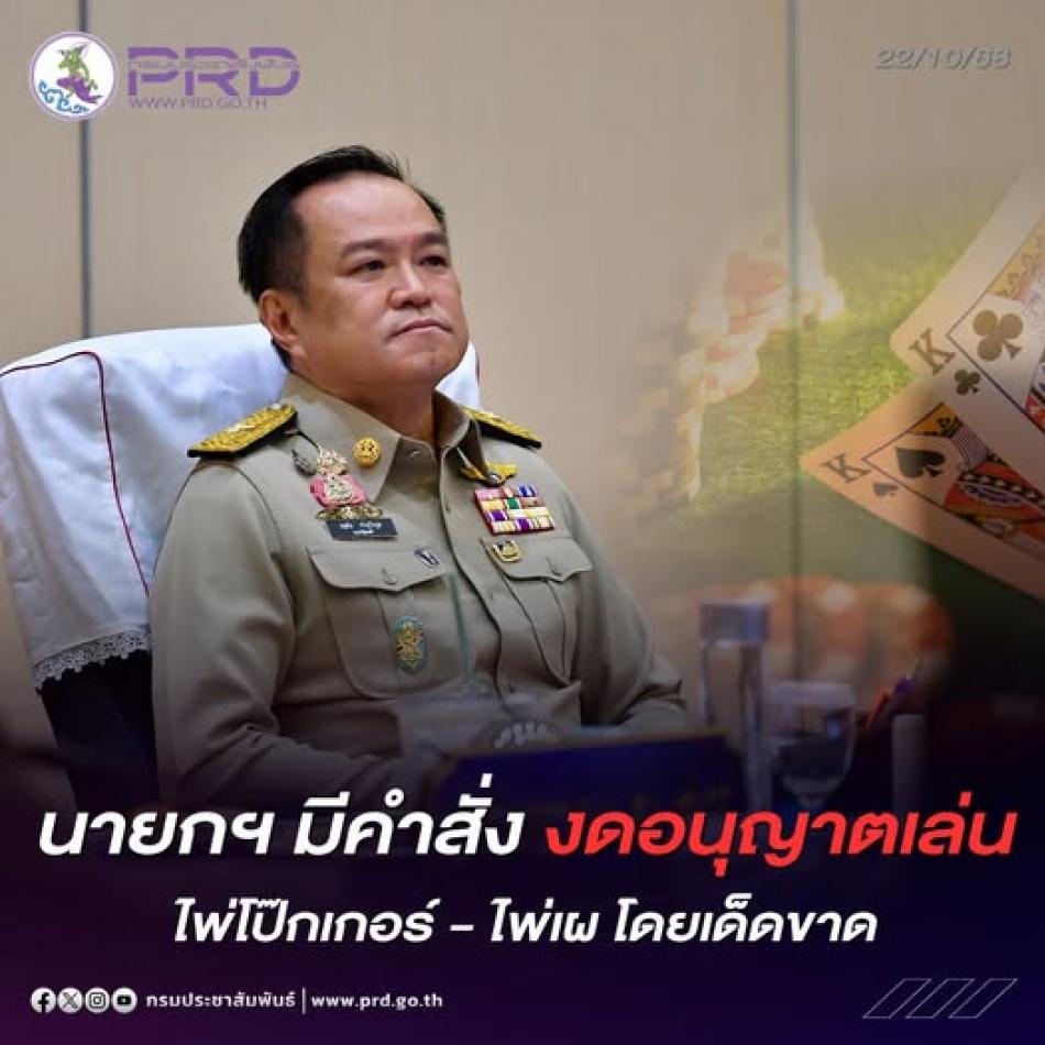 นายกฯ มีคำสั่ง งดการอนุญาตการเล่นพนันไพ่โป๊กเกอร์ หรือไพ่เผ โดยเด็ดขาด [23 ตุลาคม 2568]