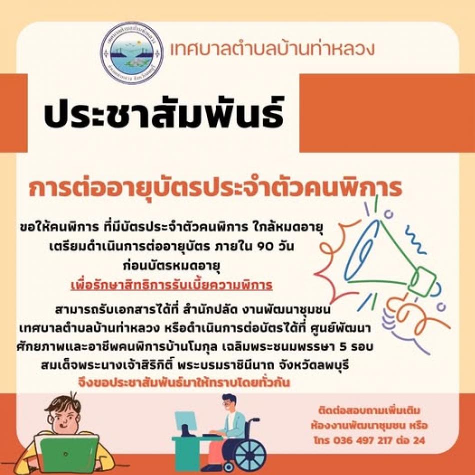 ประชาสัมพันธ์ การต่ออายุบัตรประจำตัวคนพิการ [23 ตุลาคม 2568]