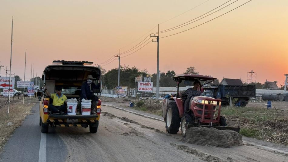 ทำความสะอาดถนนบริเวณหน้าวัดพุพะเนียง เนื่องจาก สายมันไฮดรอลิครั่วเต็มพื้น ถนนทำให้เกิดอุบัติเหตุ [6 มกราคม 2568]