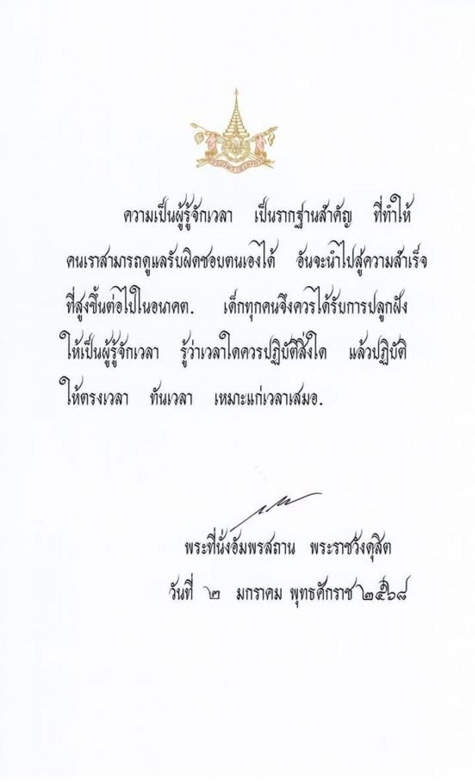 พระบาทสมเด็จพระเจ้าอยู่หัว พระราชทานพระบรมราโชวาท เนื่องในวันเด็กแห่งชาติ ประจำปี ๒๕๖๘ เพื่อเชิญลงพิมพ์ในหนังสือวันเด็กแห่งชาติ พุทธศักราช ๒๕๖๘ [4 มกราคม 2568]