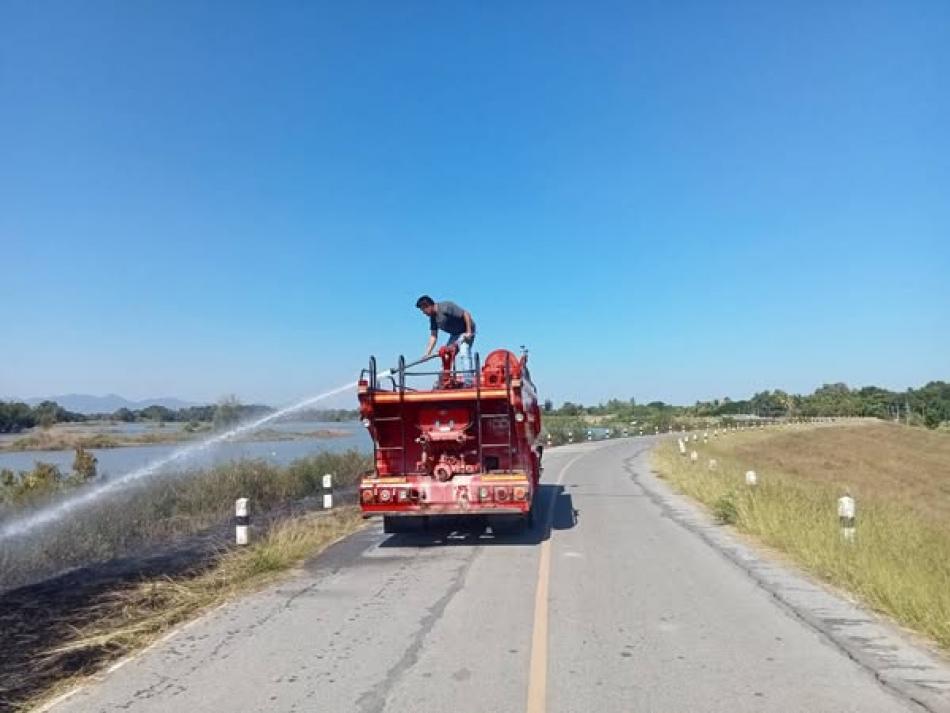 ร่วมระงับเหตุเพลิงไหม้ป่าอ้อย มีแนวโน้มลุกลามเข้าบ้านเรือนประชาชน บริเวณสี่แยกลานมัน หมู่ที่ 4 (เขตติดต่อพื้นที่องค์การบริหารส่วนตำบลท่าหลวง และเทศบาลตำบลบ้านท่าหลวง) [17 ธันวาคม 2567]