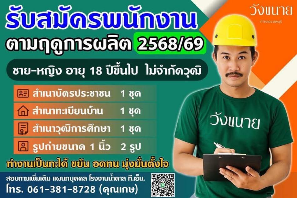 โรงงานอุตสาหกรรมน้ำตาล ที.เอ็น. เปิดรับสมัครพนักงานประจำฤดูการผลิต [17 ตุลาคม 2568]