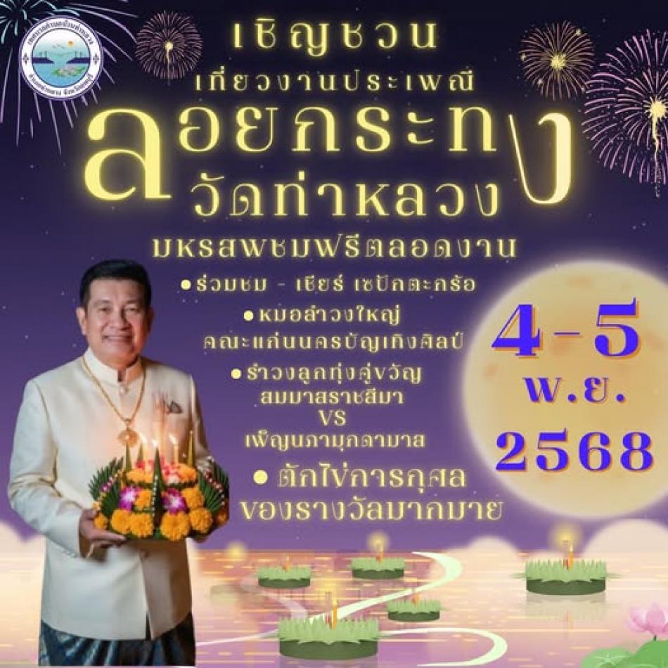 ขอเชิญชวนเที่ยวงานลอยกระทงวัดท่าหลวง ประจำปี 2568 [17 ตุลาคม 2568]