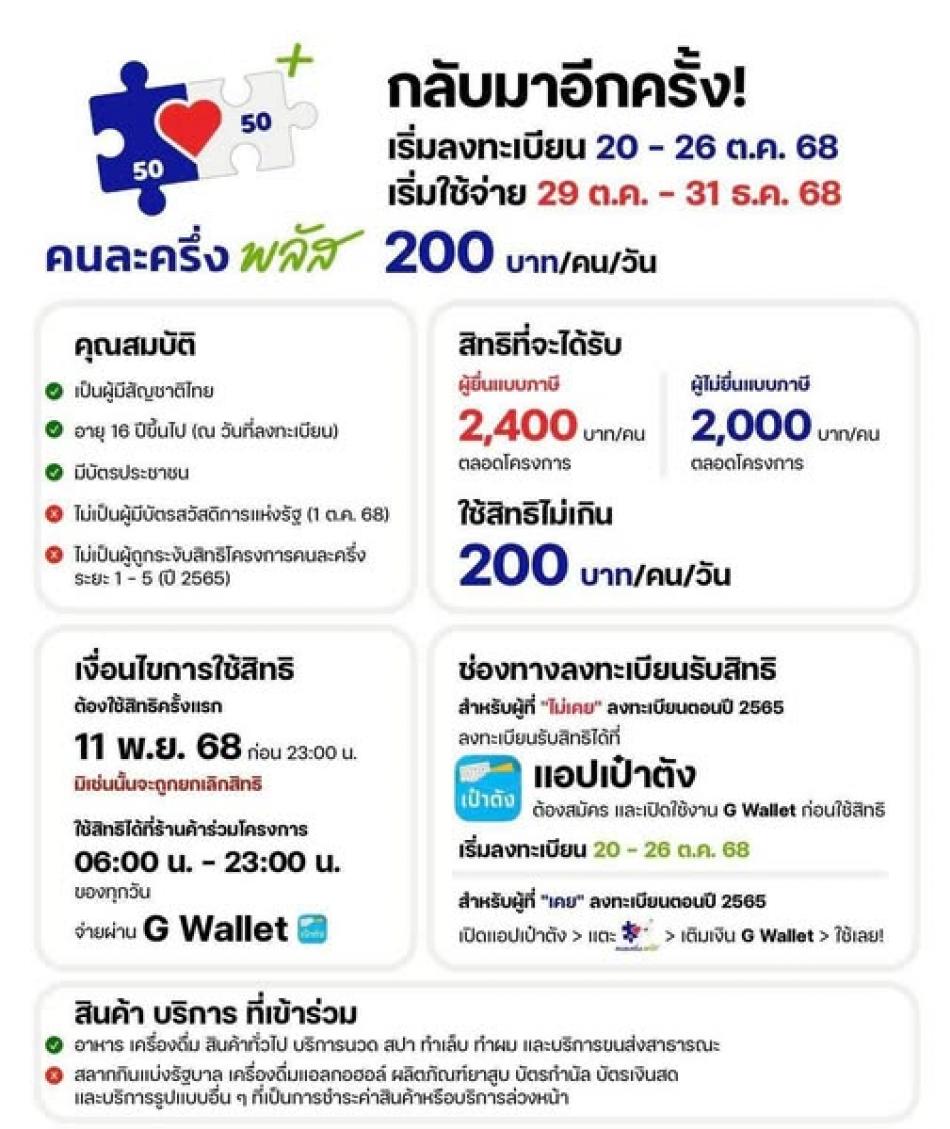 เปิดลงทะเบียนแล้ววันนี้! “คนละครึ่งพลัส” รับสูงสุด คนละ 2,400 บาท [20 ตุลาคม 2568]