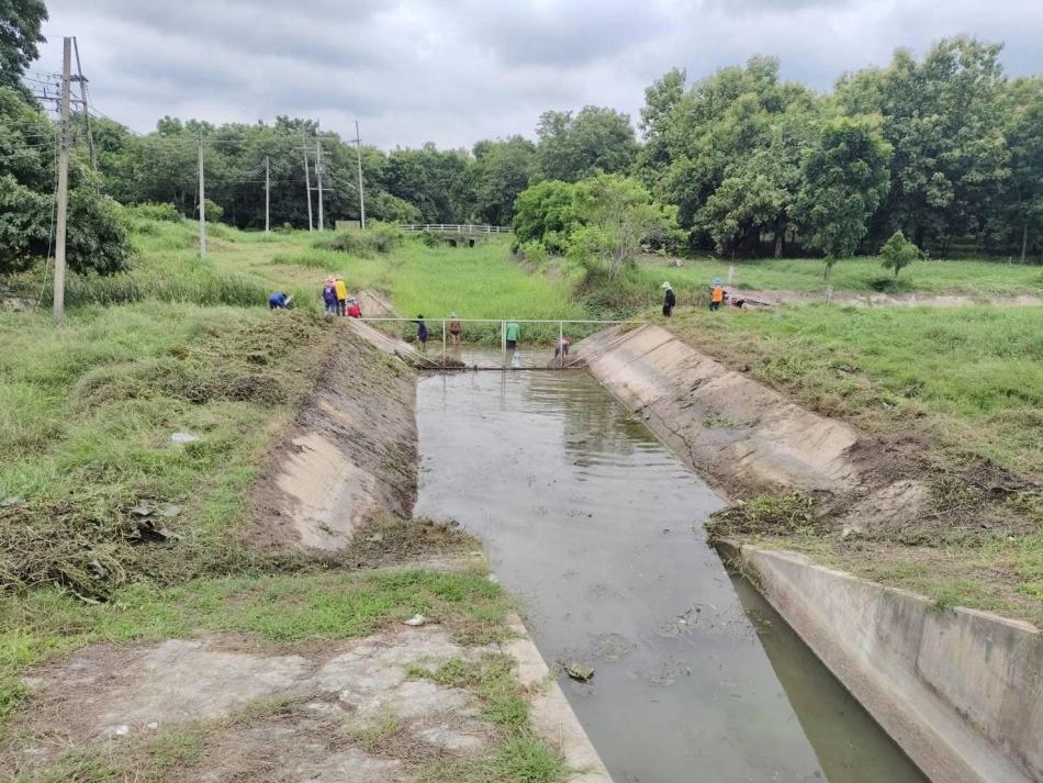 ดำเนินการกำจัดวัชพืช ขยะ และสิ่งกีดขวางทางน้ำในคลองระบายน้ำ และตรวจสอบประตูระบายน้ำ คันกั้นน้ำบ้านท่าหลวง [1 สิงหาคม 2567]