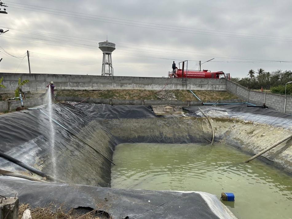 ล้างทำความสะอาดบ่อพักน้ำดิบ (บ่อสี่เหลี่ยมและบ่อผ้าใบ) บริเวณฝายผลิตน้ำประปา หมู่ที่ 9 [10 กุมภาพันธ์ 2567]