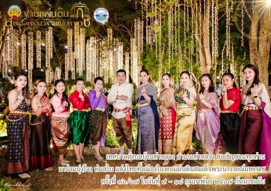 เทศบาลตำบลบ้านท่าหลวง ขอเชิญชวนชาวลพบุรีร่วมรณรงค์นุ่งโจงห่มสไบแต่งไทยทั้งเมือง ประชาสัมพันธ์การจัดงานแผ่นดินสมเด็จพระนารายณ์มหาราชประจำปี ๒๕๖๗ สร้างอัตลักษณ์ให้กับคนลพบุรีและ Soft Powerของจังหวัดลพบุรี [18 มกราคม 2567]