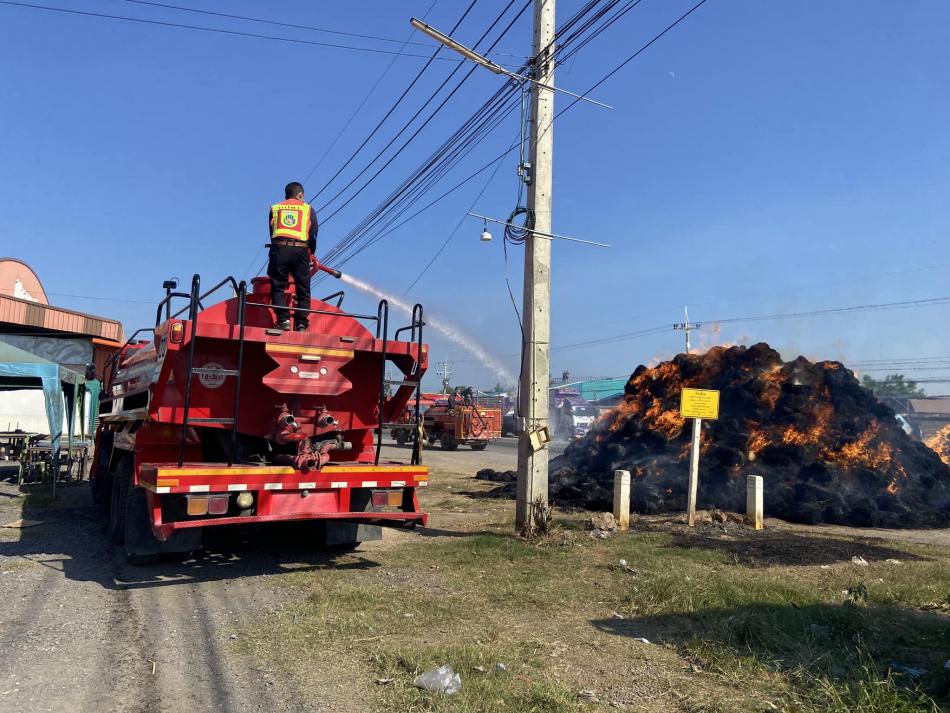 นำรถดับเพลิงออกร่วม ระงับเหตุเพลิงไหม้ รถฟางหน้าบริเวณปั๊มน้ำมันพีที สาขาบ่อคู่ [20 พฤศจิกายน 2566]