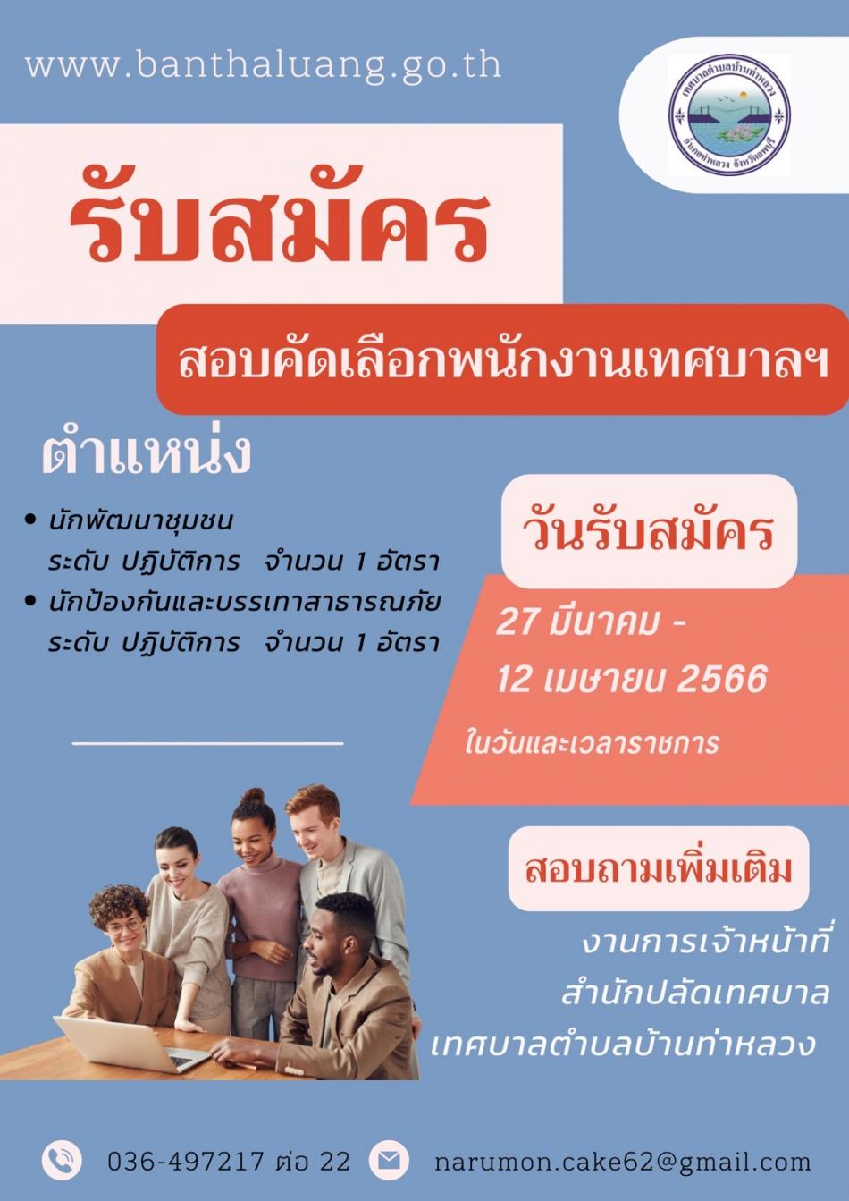 ประชาสัมพันธ์รับสมัครสอบคัดเลือกพนักงานเทศบาล [1 มีนาคม 2566]