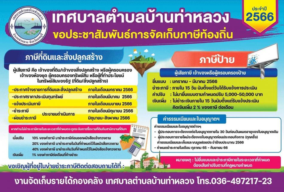 ประชาสัมพันธ์กำหนดระยะเวลาในการชำระภาษีต่างๆประจำปี 2566 [1 มีนาคม 2566]