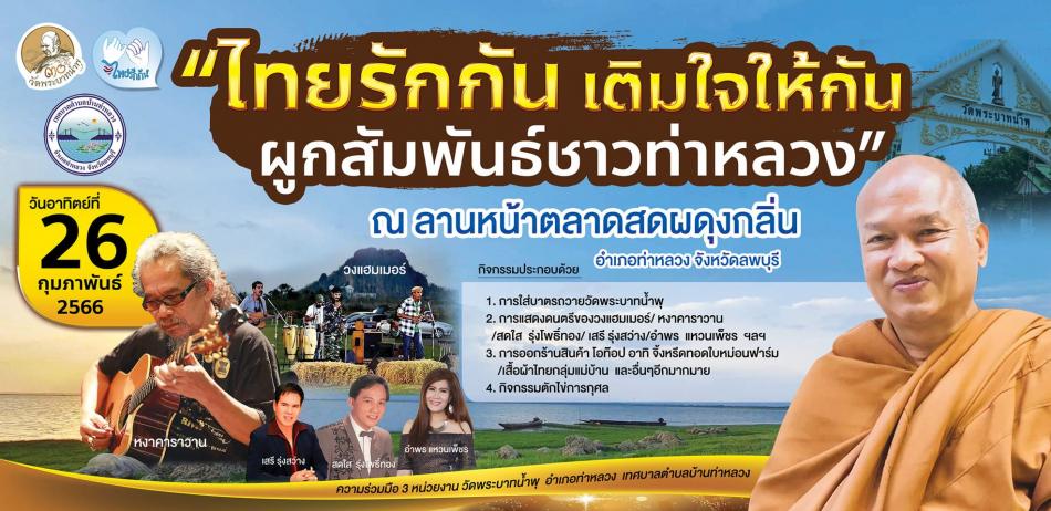 ขอเชิญร่วมงาน "ไทยรักกัน เติมใจให้กัน ผูกสัมพันธ์ ชาวท่าหลวง" ในวันอาทิตย์ที่ 26 กุมภาพันธ์ 2566 [21 กุมภาพันธ์ 2566]