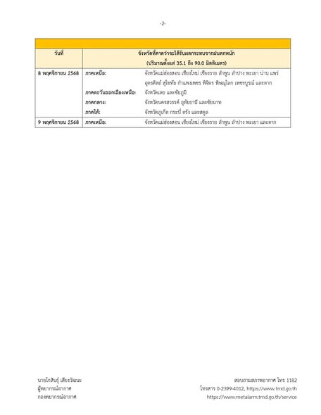 กรมอุตุนิยมวิทยาจะออกประกาศฉบับต่อไปในวันที่ 8 พฤศจิกายน พ.ศ. 2568 เวลา 11.00 น.